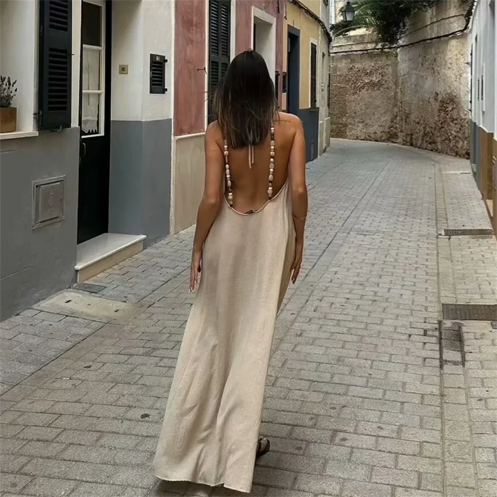 Dam Klänning Avslappnad Med Pärldekoration Sommar