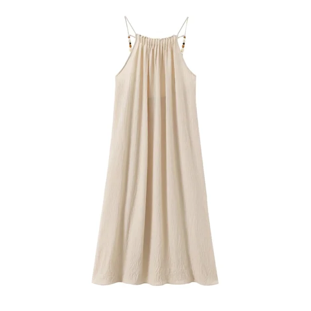 Upplev en perfekt kombination av stil och komfort med denna klänning. Den är designad för att ge dig en känsla av elegans och avslappning under sommardagar.