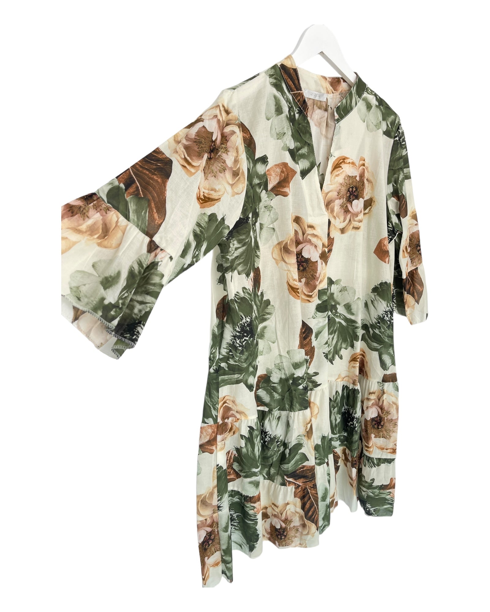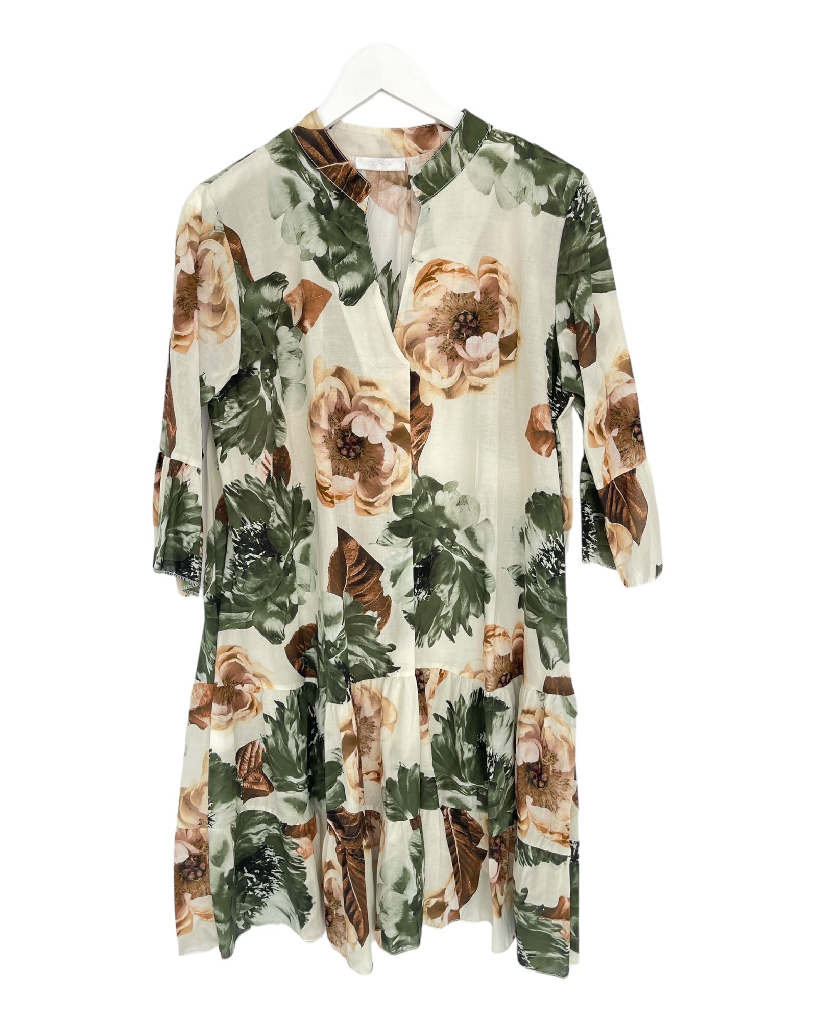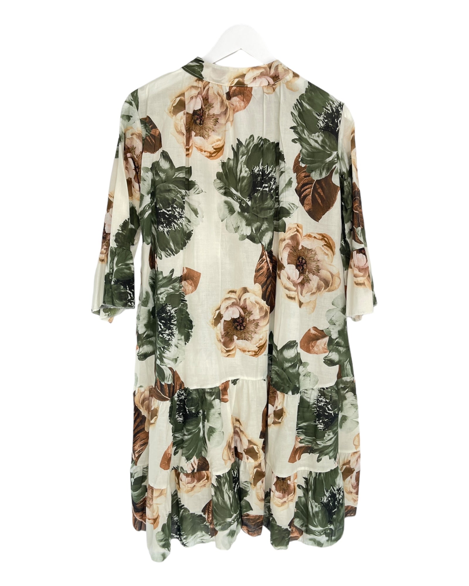 Denna klänning är perfekt för både avslappnade och mer formella tillfällen. Med sitt vackra blommatryck och mjuka bomullsmaterial, kommer du att känna dig både bekväm och stilfull.