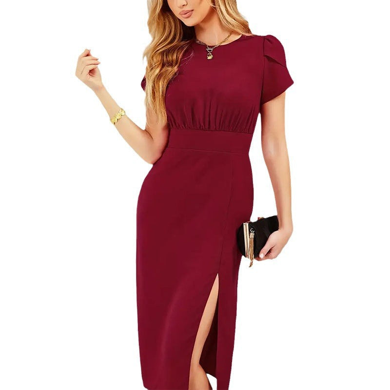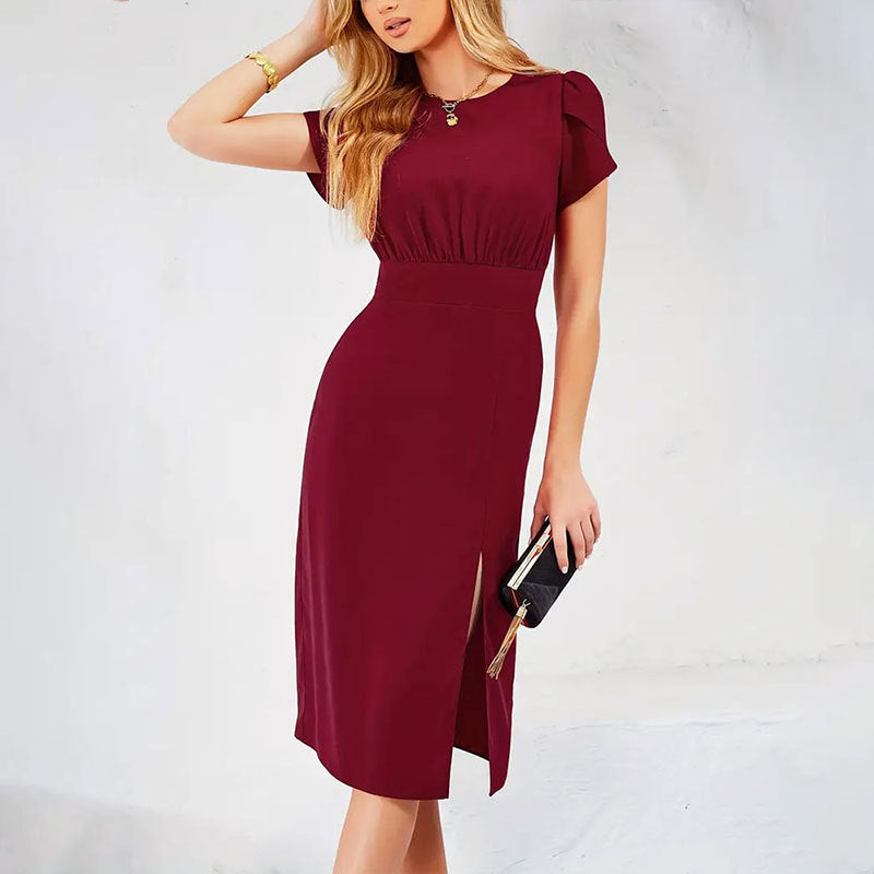 Dam Klänning Midi Puffärmar Andningsbart Tyg Hög Slits