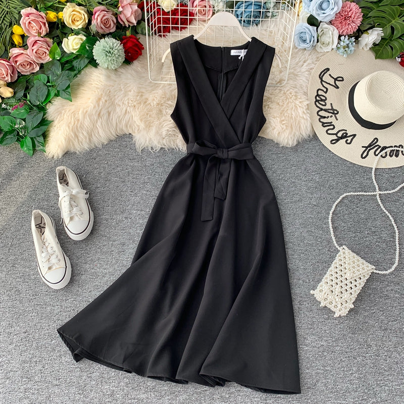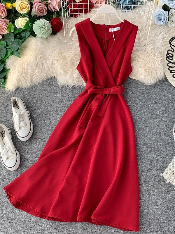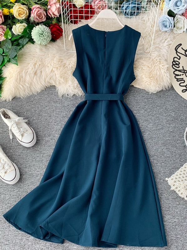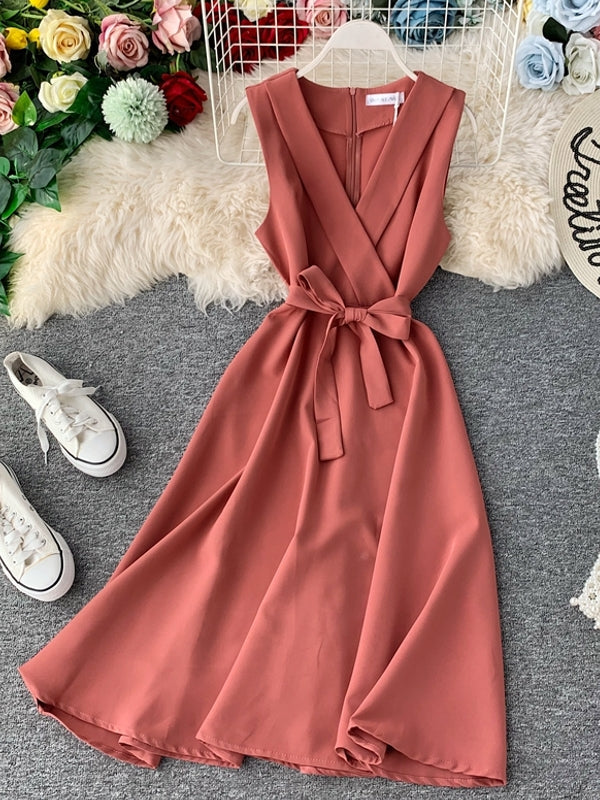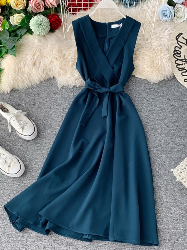 Dam Klänning Midi V-ringad Ärmlös A-linje Polyester