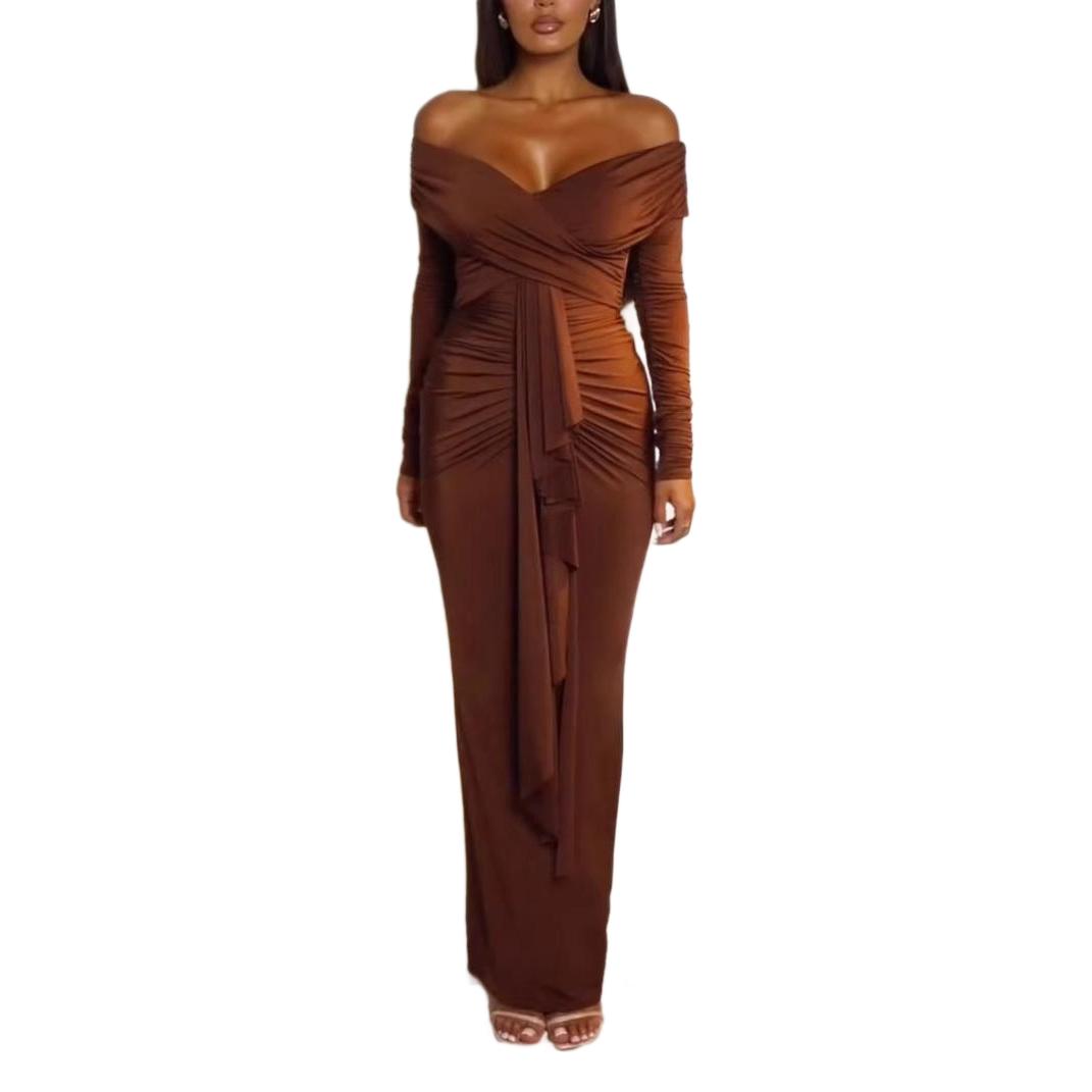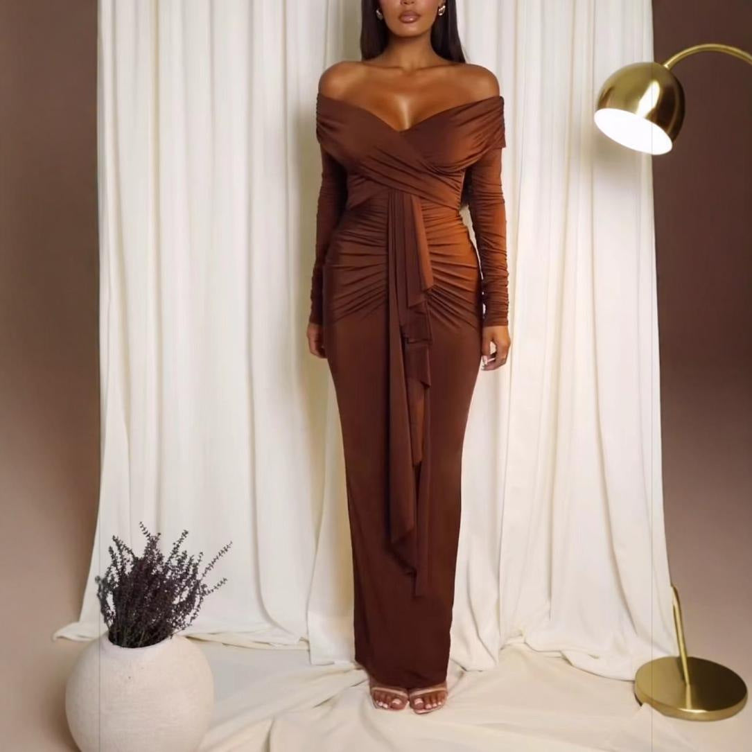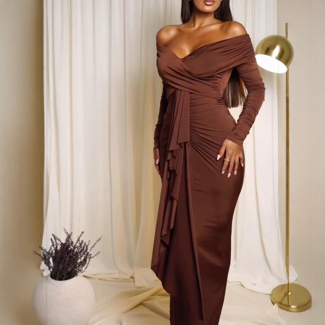 Dam Klänning Off-Shoulder Oregelbunden Veckad Högkvalitativt Tyg
