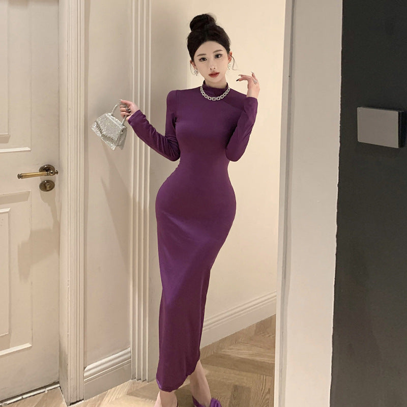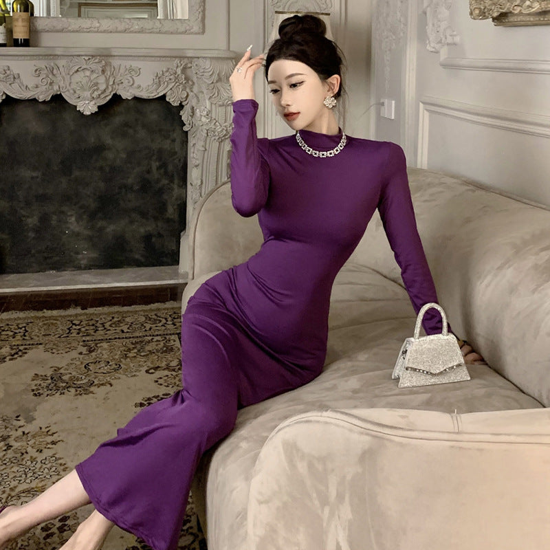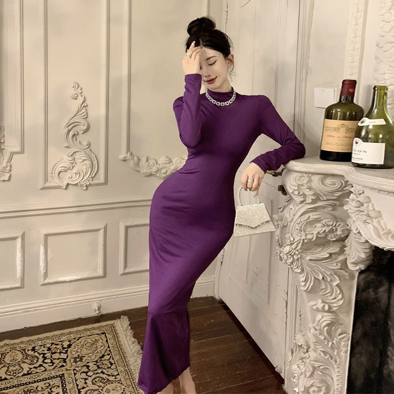 Dam Klänning Rundhals Slim Fit Lång Polyester Fina Dam Klänningar