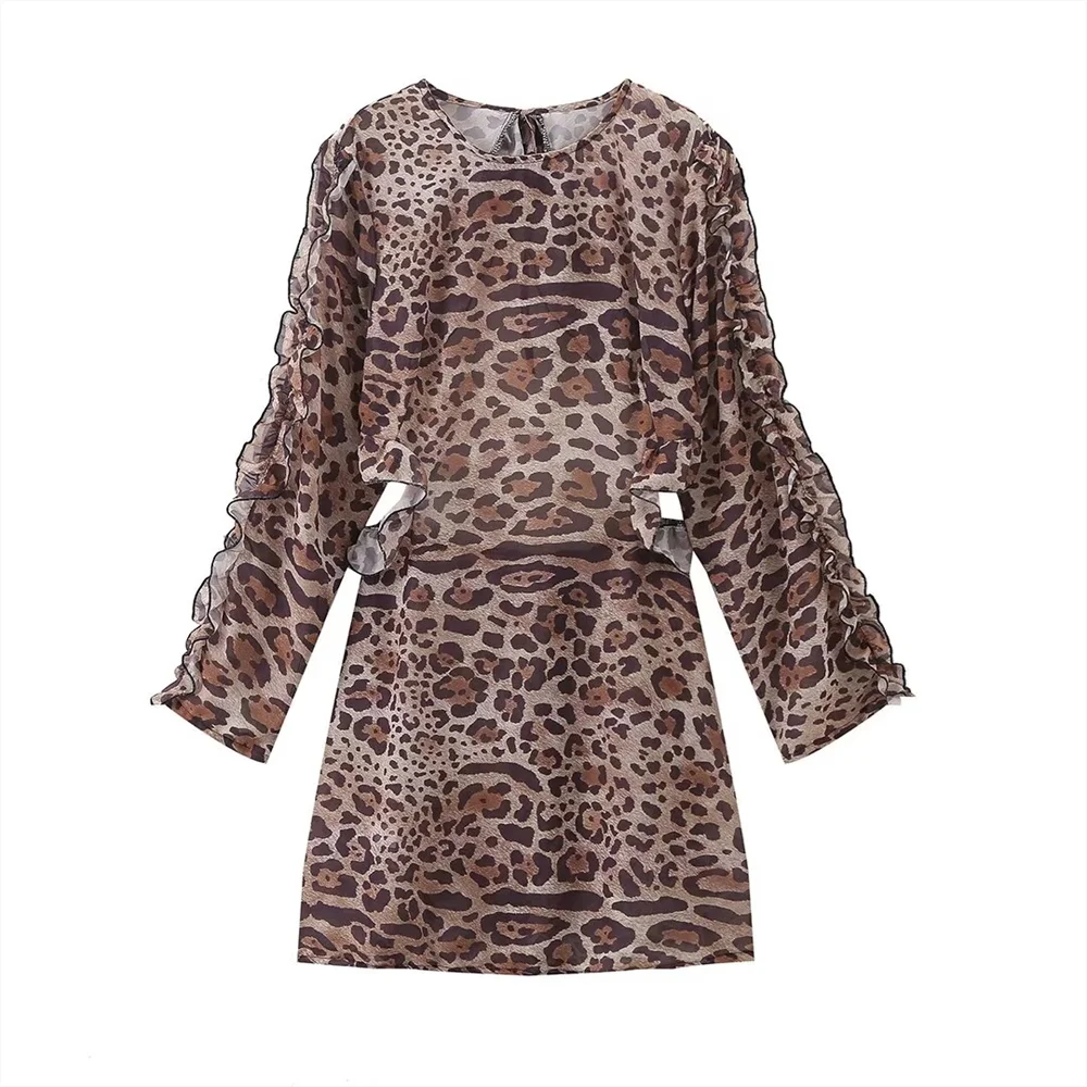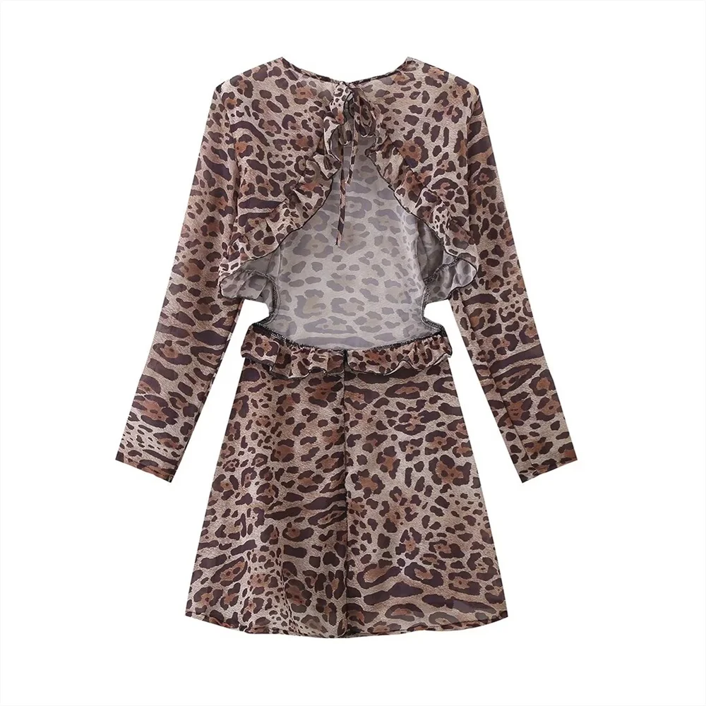 Dam Klänning Slim Fit Leopardmönster Polyester Öppen Rygg