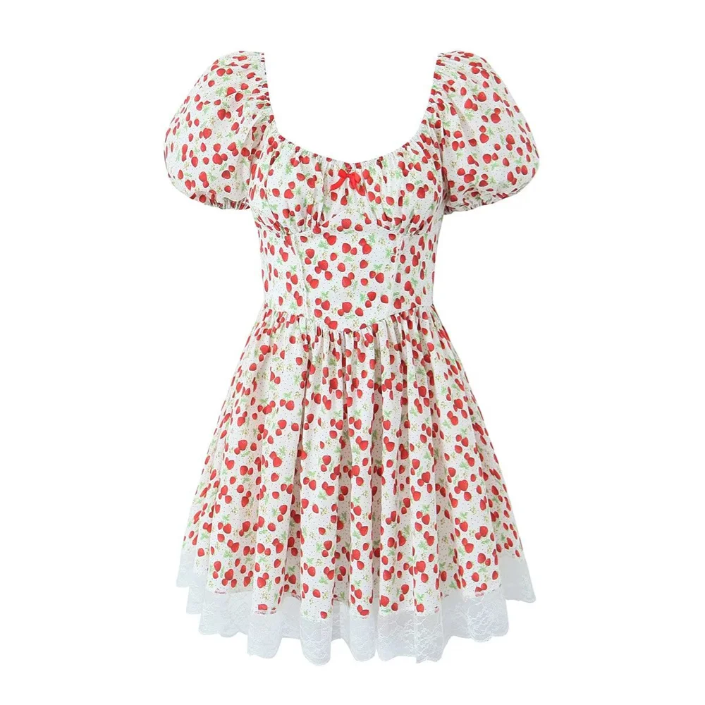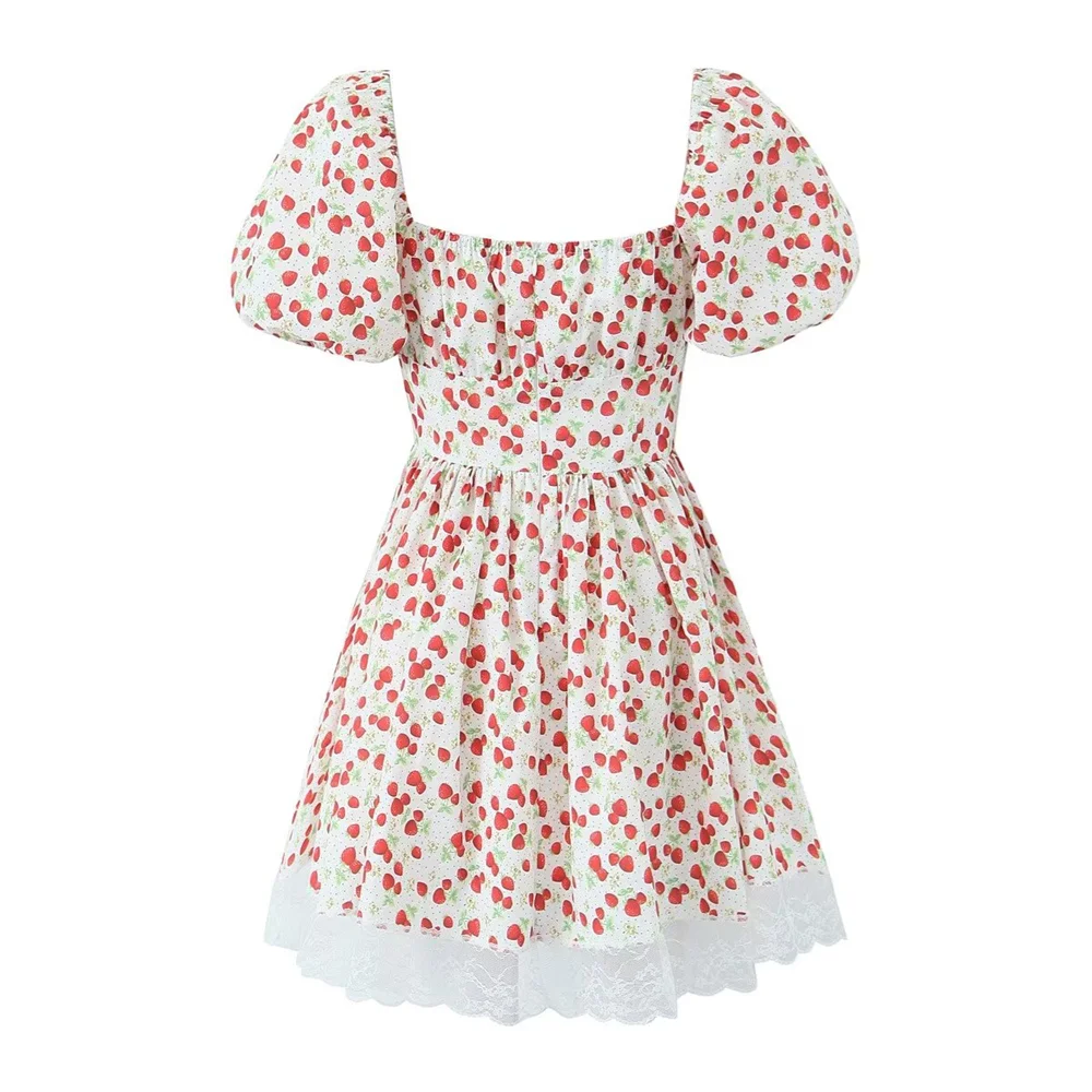 Dam Klänning Smal Passform Jordgubbstryck Polyester Fina Dam Klänningar
