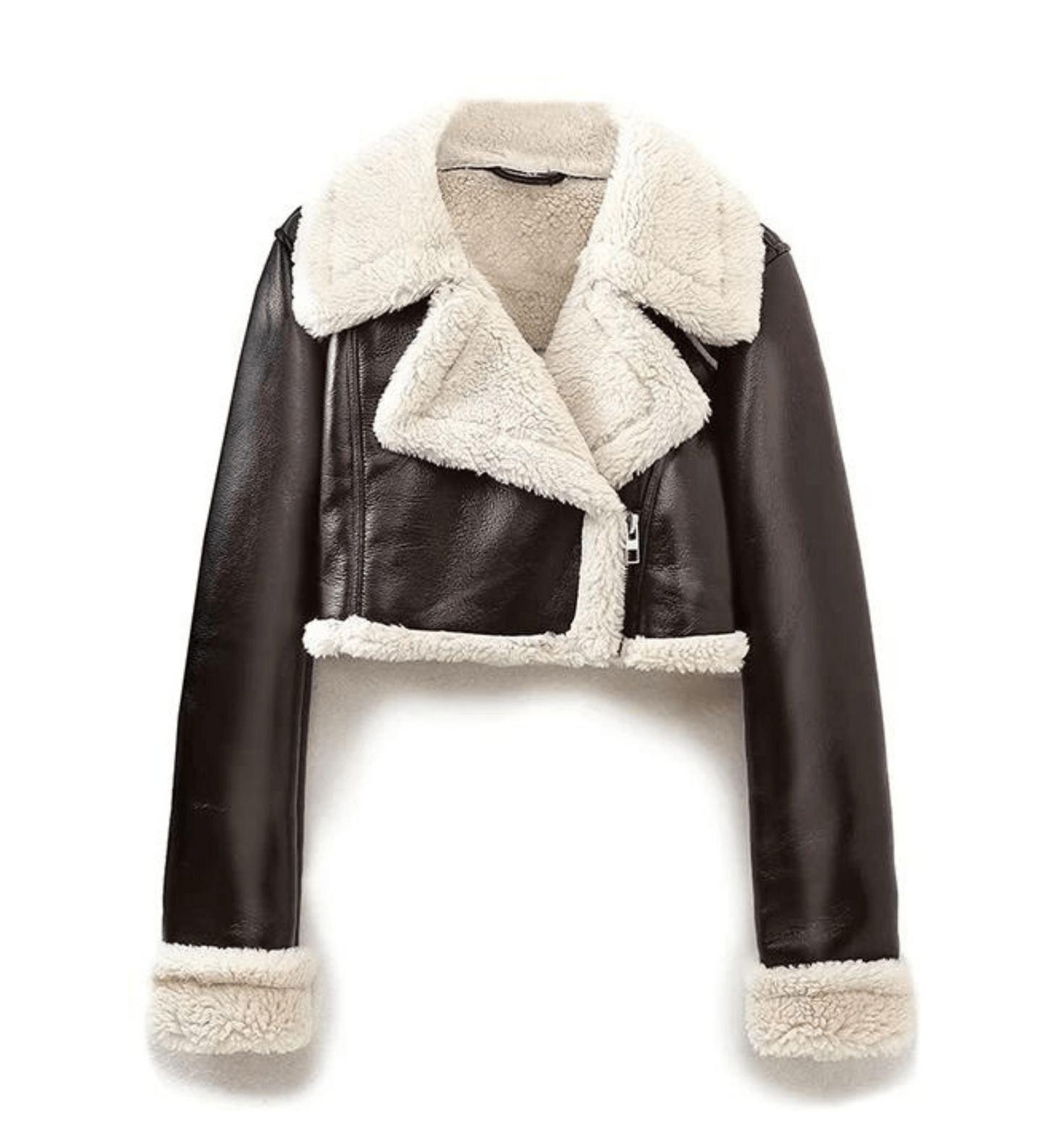 Dam Kort Skinnjacka Asymmetrisk Syntetiskt Läder med Fårskinnsfoder