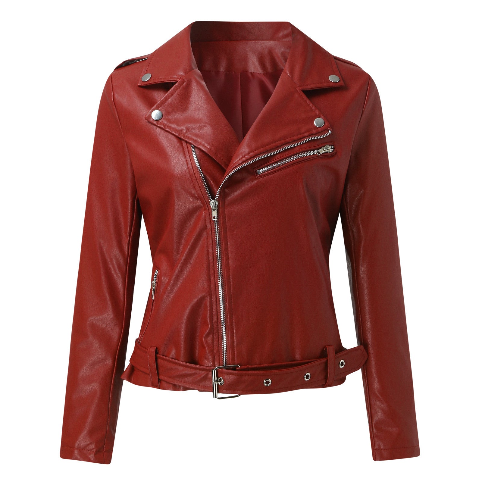 Dam Kort Skinnjacka Med Blixtlås Läder
