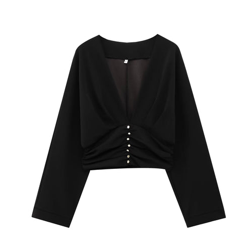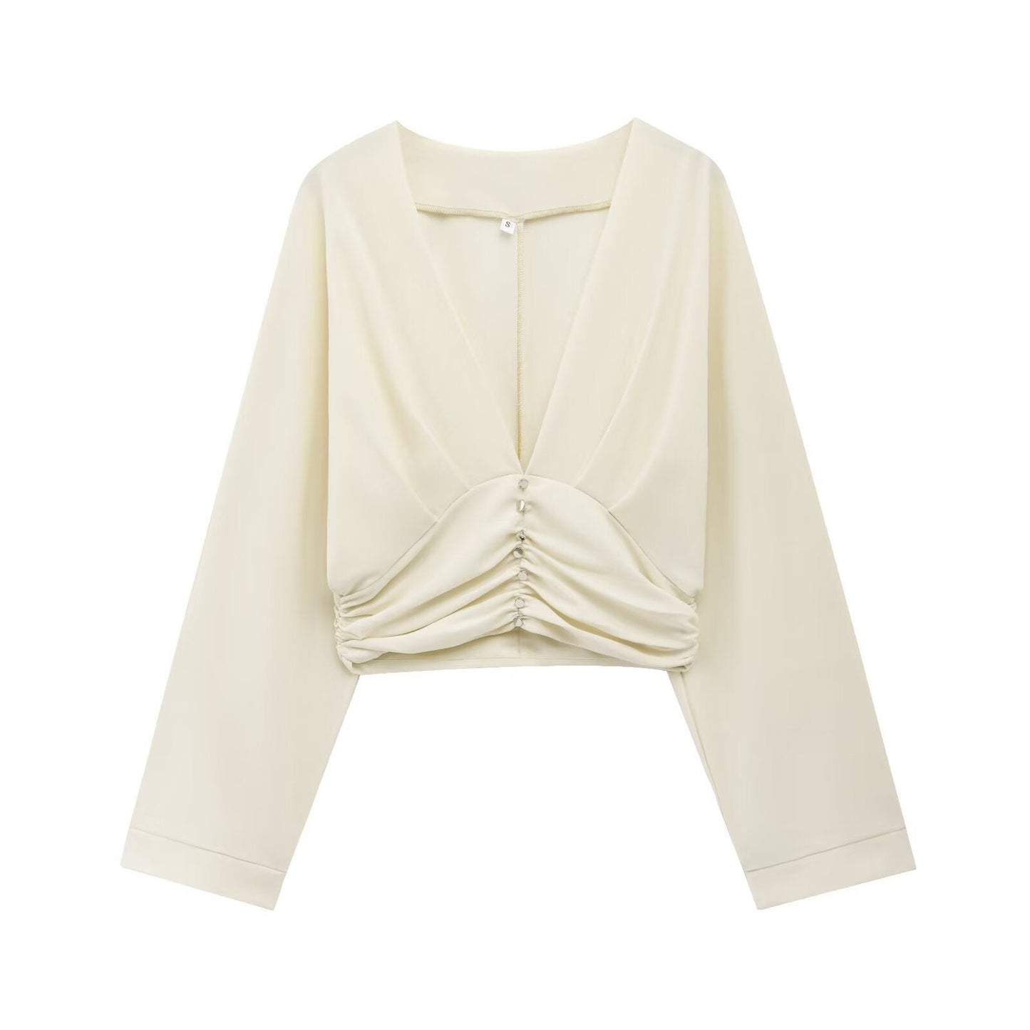 Tröjan har en unik design med veckad detalj och långa ärmar, vilket ger en modern och trendig look. Den är idealisk att bära under vår- och höstsäsongen, och passar utmärkt med olika underdelar.