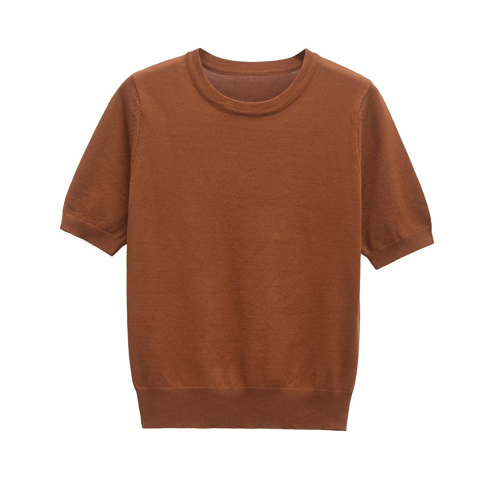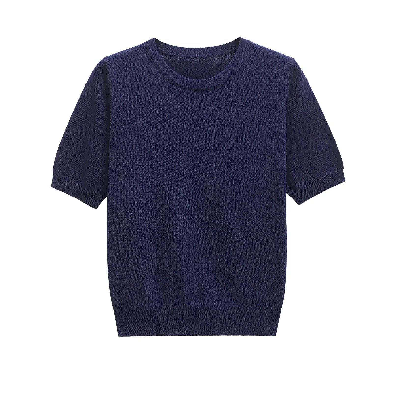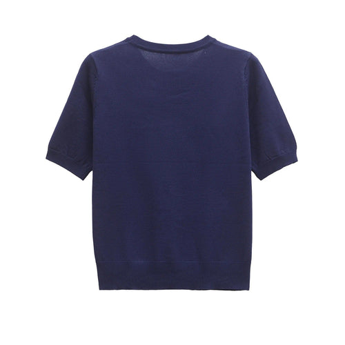Dam Kortärmad Stickad Tröja Minimalistisk Bomull
