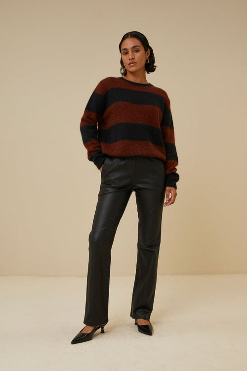 Med en modern och tidlös design är dessa läderbyxor perfekta för både vardag och fest. De är tillverkade av högkvalitativt läder som ger en lyxig känsla och en smickrande passform.
