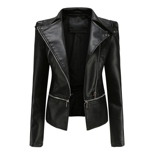 Dam Läderjacka Asymmetrisk Design Mjuk PU-Läder