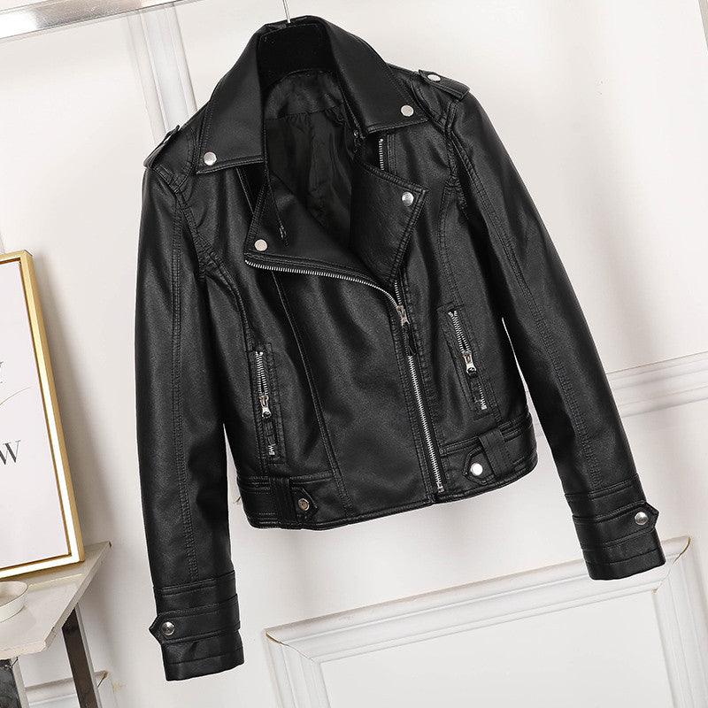 Dam Läderjacka med Kapell och Blixtlås Elegant Högkvalitativ Läder