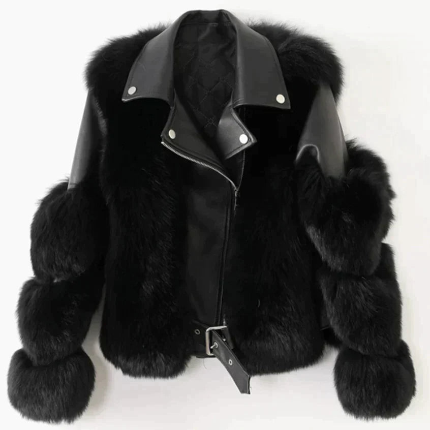 Upplev en känsla av lyx och stil med vår läderpälsrock, perfekt för alla säsonger. Denna jacka är designad för att ge dig en elegant look samtidigt som den erbjuder komfort och värme.