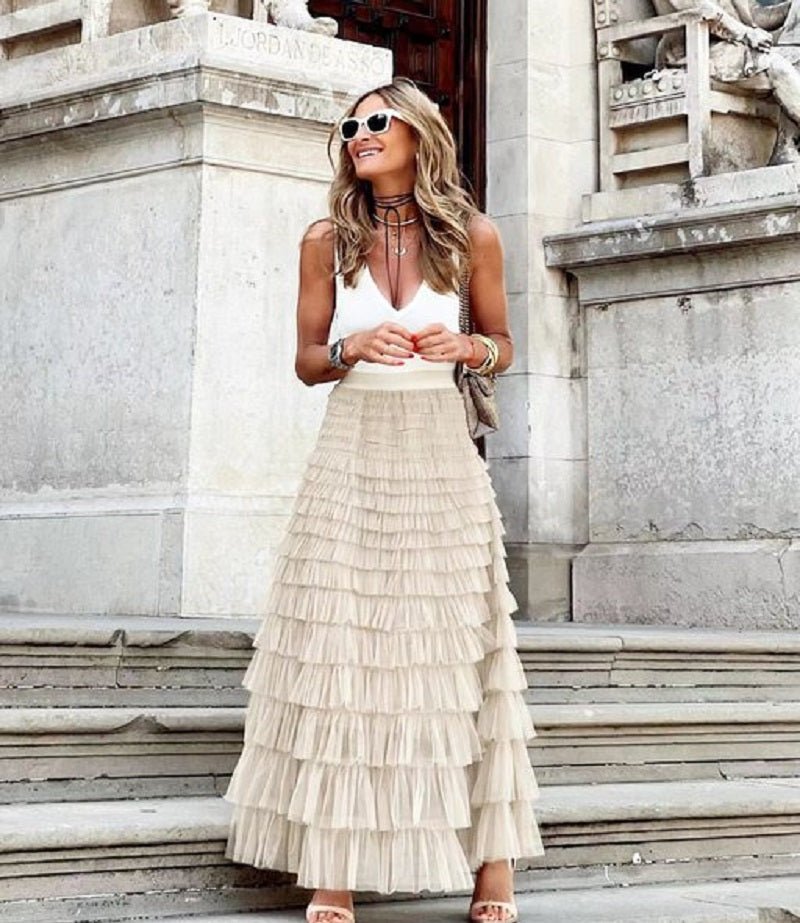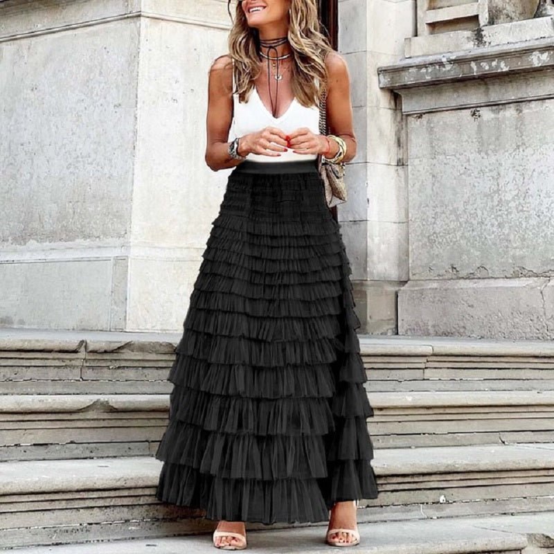 Upplev en touch av elegans med denna långa kjol, en oumbärlig del av garderoben för stilmedvetna kvinnor. Den kombinerar komfort och stil, vilket gör den perfekt för olika tillfällen.