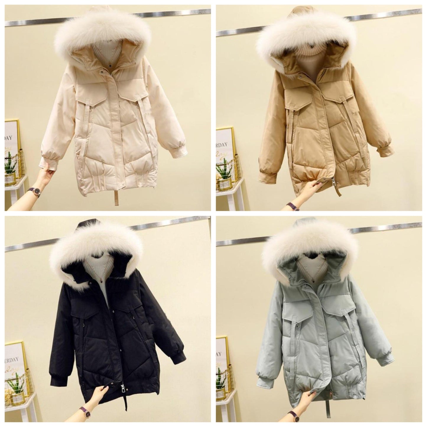Dam Lång Vinterjacka Syntetisk Päls Mitten av Låret