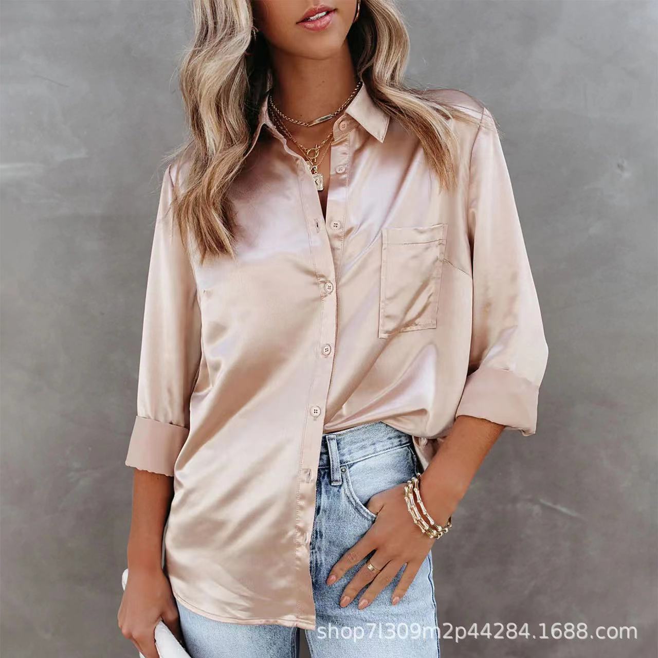Dam Långärmad Skjorta Satin Avslappnad Passform