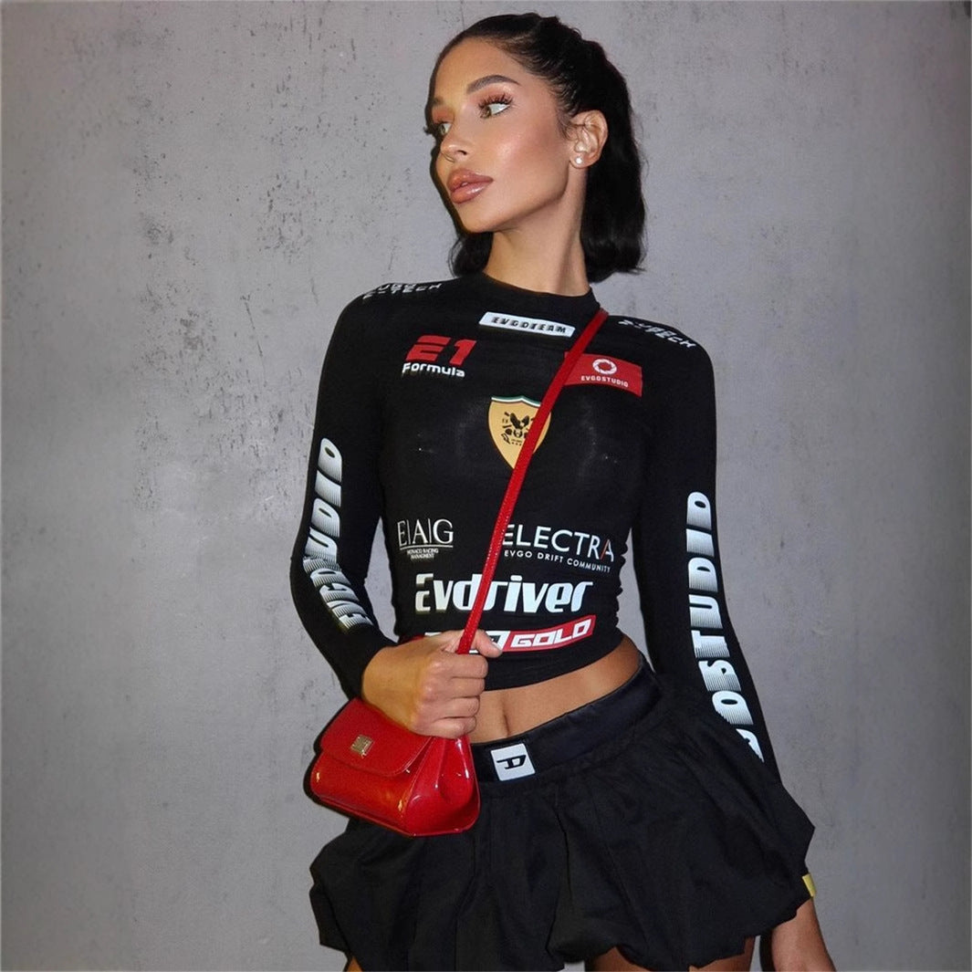 T-shirten har en rund hals och långa ärmar, vilket gör den idealisk för både vardagligt bruk och mer avslappnade tillställningar. Det tryckta mönstret ger en modern touch som passar perfekt in i street fashion.