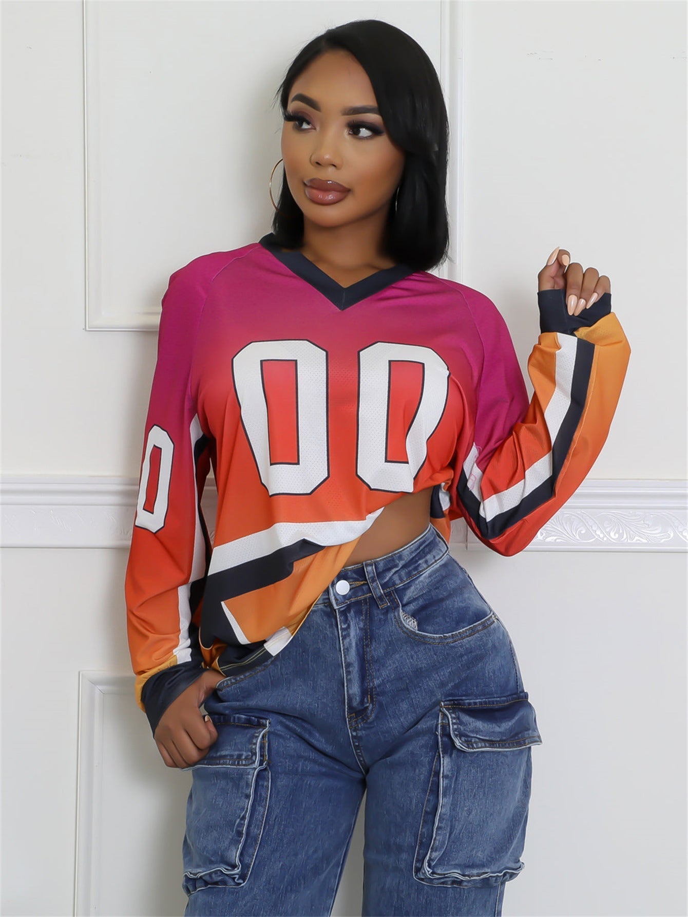 Denna topp är idealisk för vardagligt bruk och kan enkelt stylas för olika tillfällen. Med sin V-ringning och färgblockering ger den en modern och trendig look som passar perfekt i din garderob.
