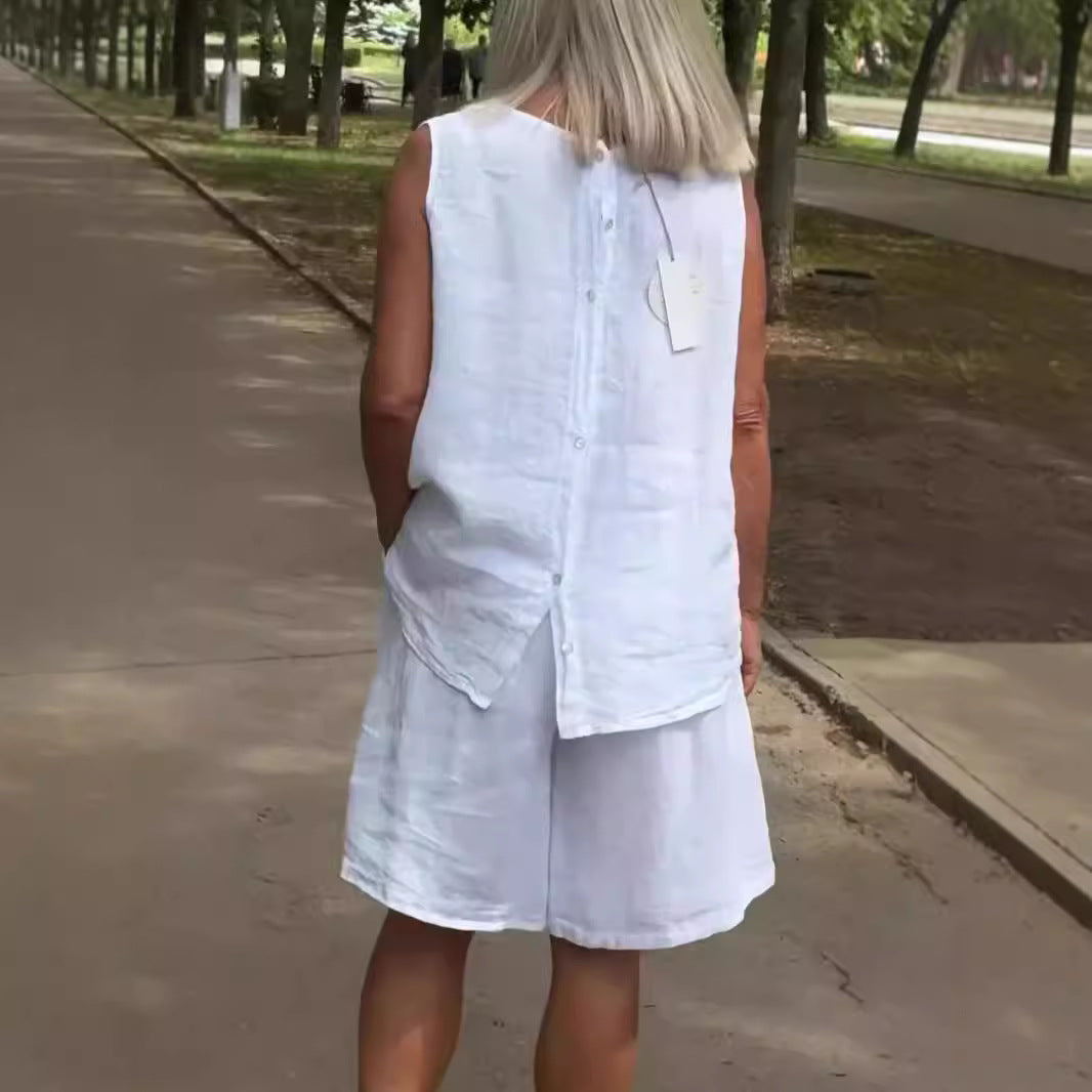 Dessa ärmlösa byxor är designade för att ge en avslappnad look, idealiska för både vardag och fritid. Med en tidlös stil och en neutral färgpalett passar de utmärkt till olika outfits och tillfällen.