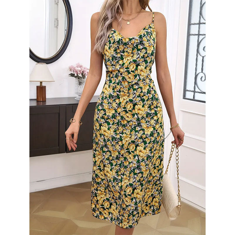 Denna klänning är idealisk för sommarens alla tillfällen, från en avslappnad dag i parken till en elegant kväll med vänner. Den figurnära silhuetten framhäver din kropp på ett smakfullt sätt och ger en feminin look.