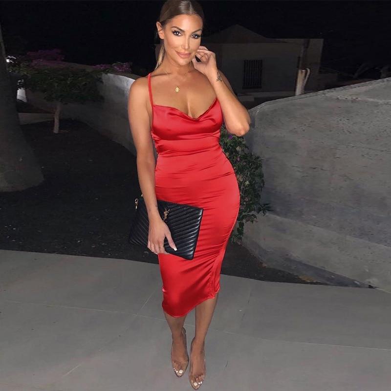 Dam Midiklänning Glansigt Material Figurbetonad Midi Klänning