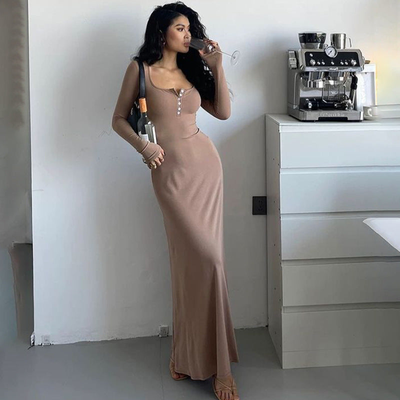 Dam Midiklänning Långärmad Elastisk Figur-Hugging