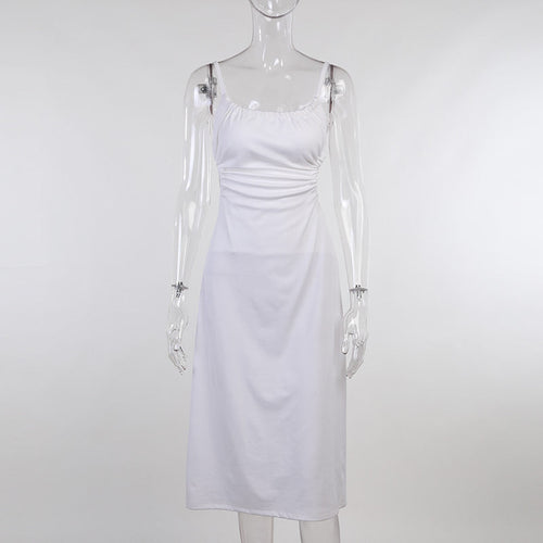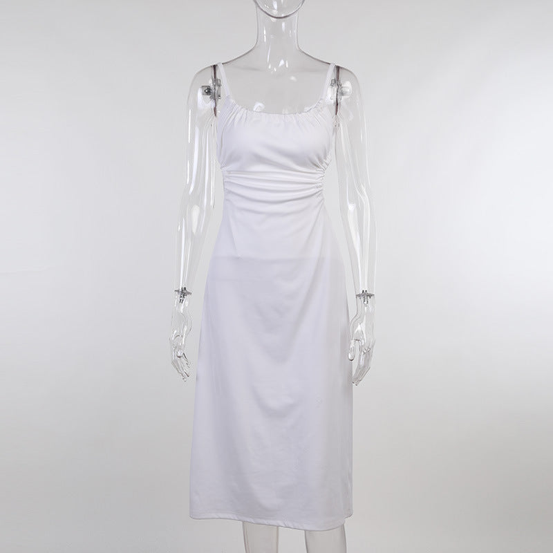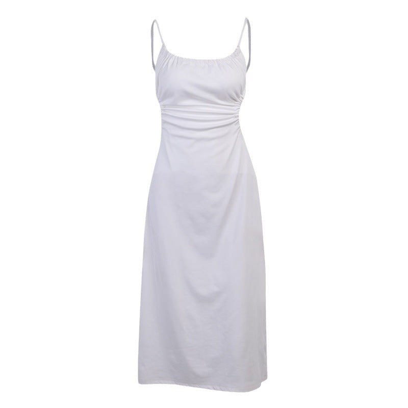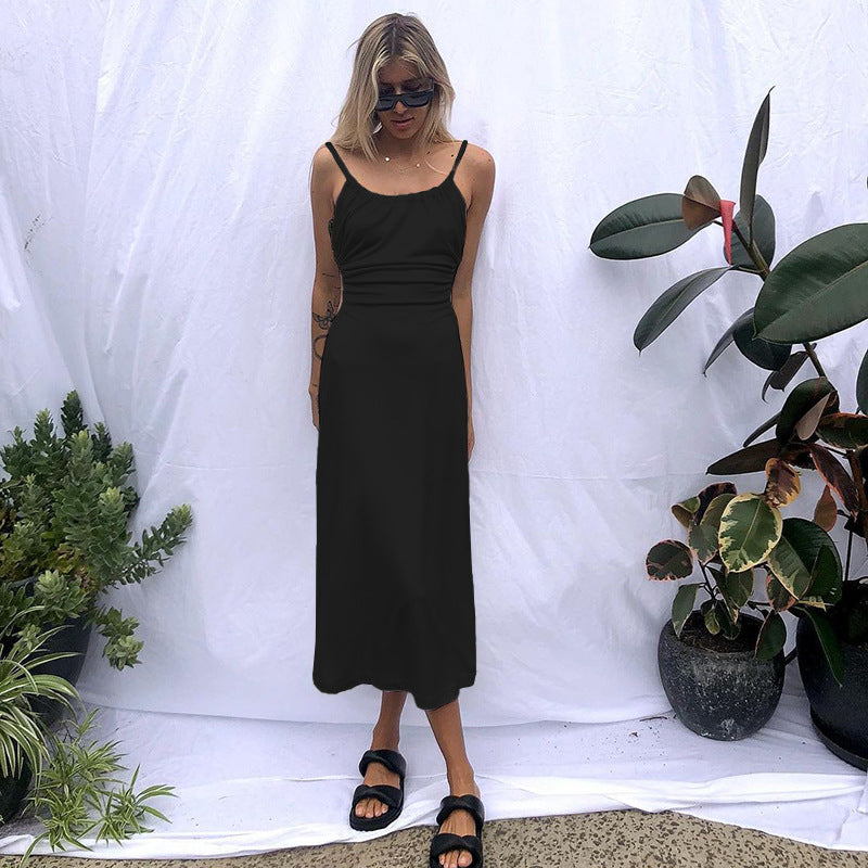 Designen inkluderar subtila ruffles som framhäver silhuetten, medan de justerbara spaghettibanden säkerställer en perfekt passform. Tillverkad av ett mjukt och andningsbart tyg, erbjuder klänningen en fantastisk bärkomfort, vilket gör den idealisk för varma sommardagar.