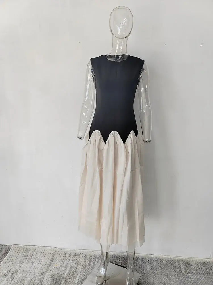 Den unika lapptäcksdesignen och längden som når mitt på kalvarna ger klänningen en elegant och modern look. Perfekt för både vardag och fest, denna klänning är ett måste i din garderob.