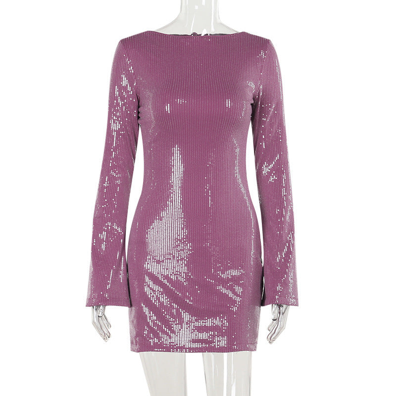 Dam Miniklänning Glittrig Långärmad Elastisk Design