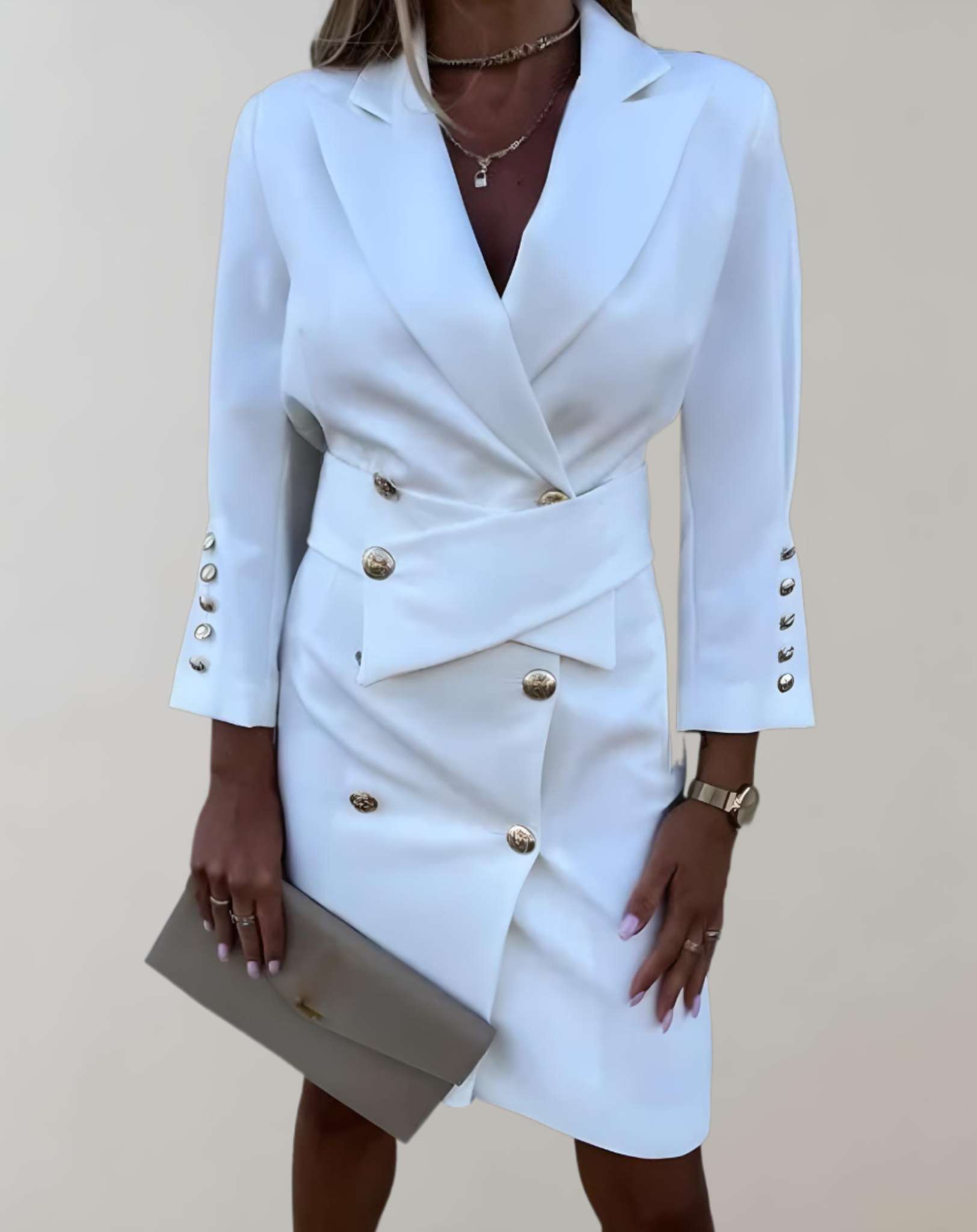 Denna klänning har en elegant knäppfront som ger en trendig silhuett. Den är idealisk för både avslappnade utflykter och mer formella evenemang, vilket gör den till ett mångsidigt plagg i din garderob. Minilängden framhäver benen och ger en ungdomlig och livlig stil.