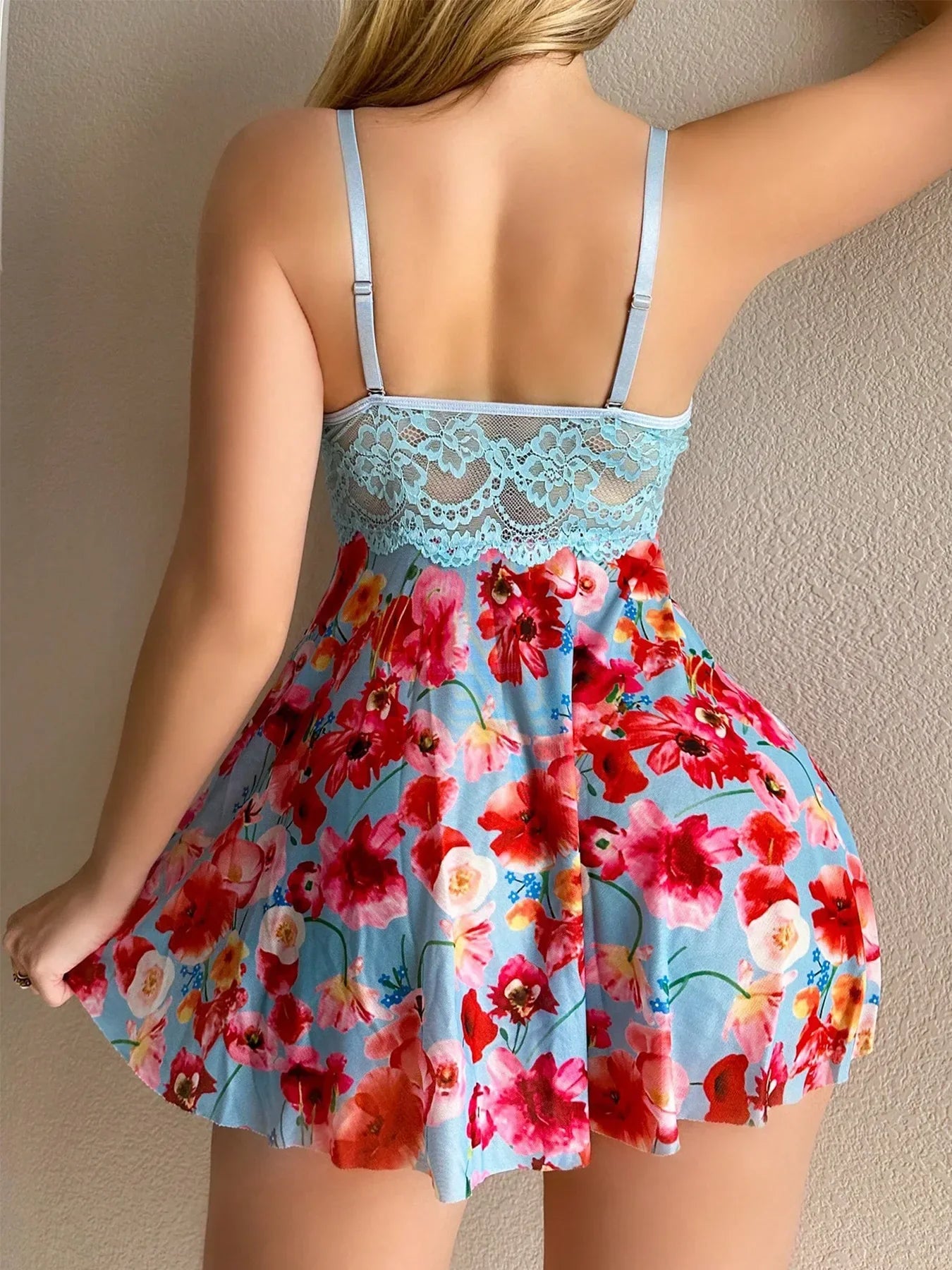 Denna nattklänning är tillverkad av en blandning av polyester och spandex, vilket ger en härlig känsla mot huden. Den är idealisk för både lugna kvällar hemma och som en stilfull del av din nattklädsel.