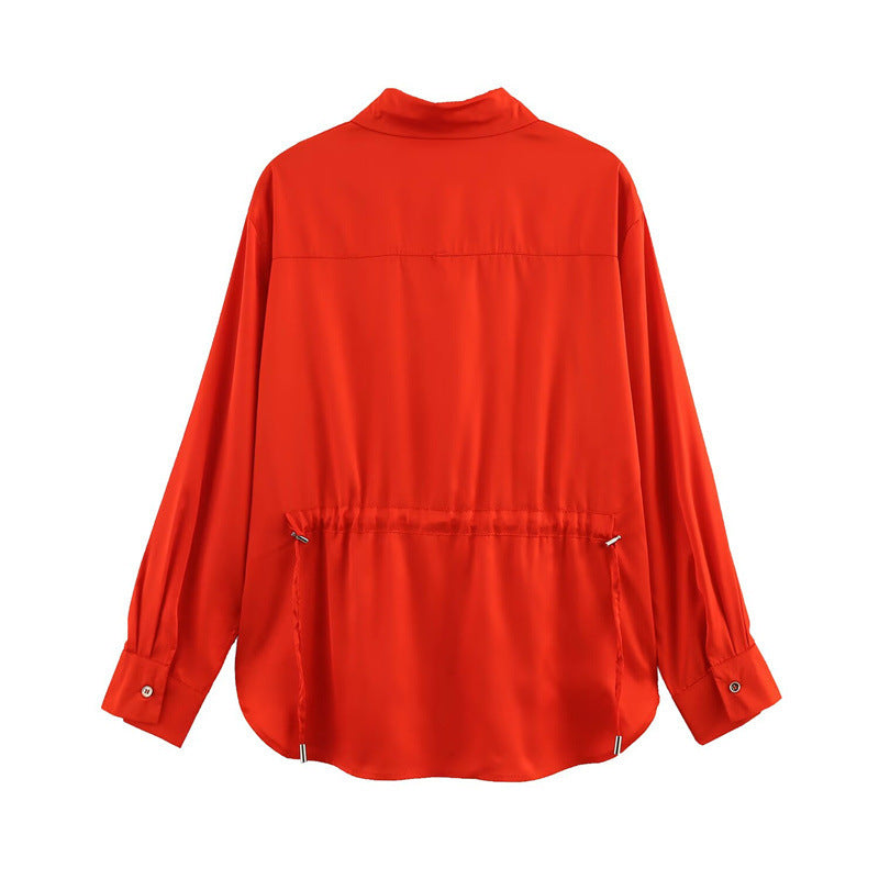 Dam Nischskjorta Vänd Krage Glansigt Siden