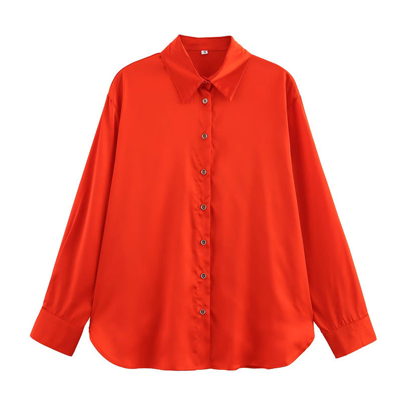 Skjortan har en vacker glansig yta och en klassisk design med vänd krage. Den är idealisk för olika tillfällen, från kontoret till en kväll ute, och ger en tidlös look som aldrig går ur modet.
