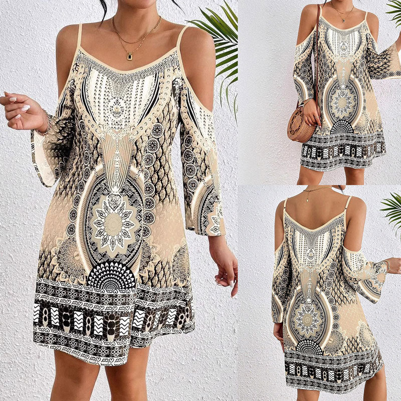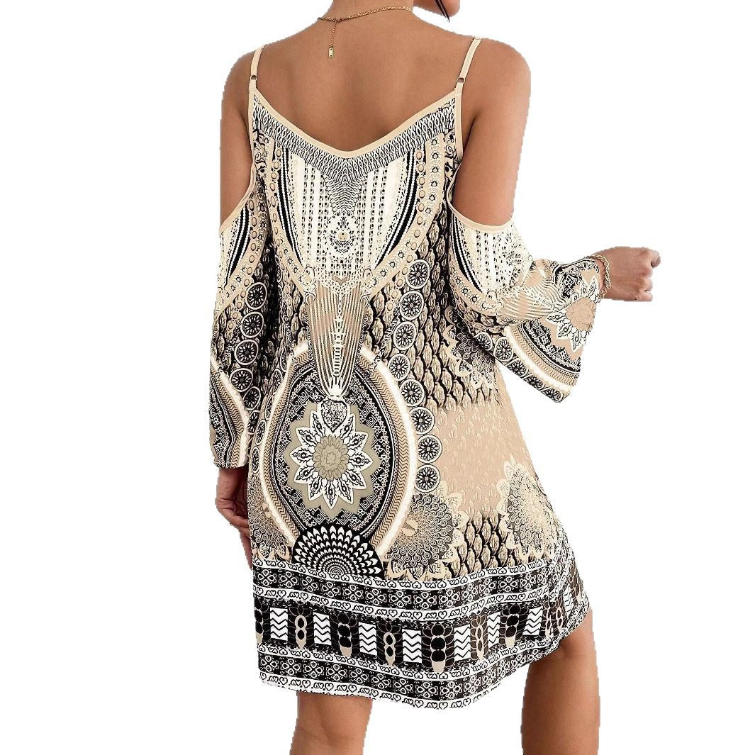 Denna off-shoulder midi klänning är perfekt för att skapa en elegant och avslappnad look. Med sitt vackra tryck och bekväma passform kommer du att känna dig fantastisk varje gång du bär den.