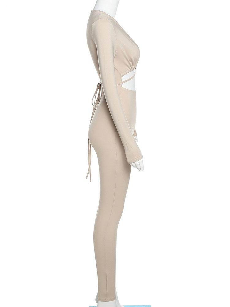 Overallens snörning i bröstområdet ger en feminin touch, medan den monokroma färgen gör den lätt att styla för olika tillfällen. Perfekt för både vardag och avslappnade utekvällar, denna overall är ett måste i din garderob.