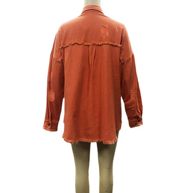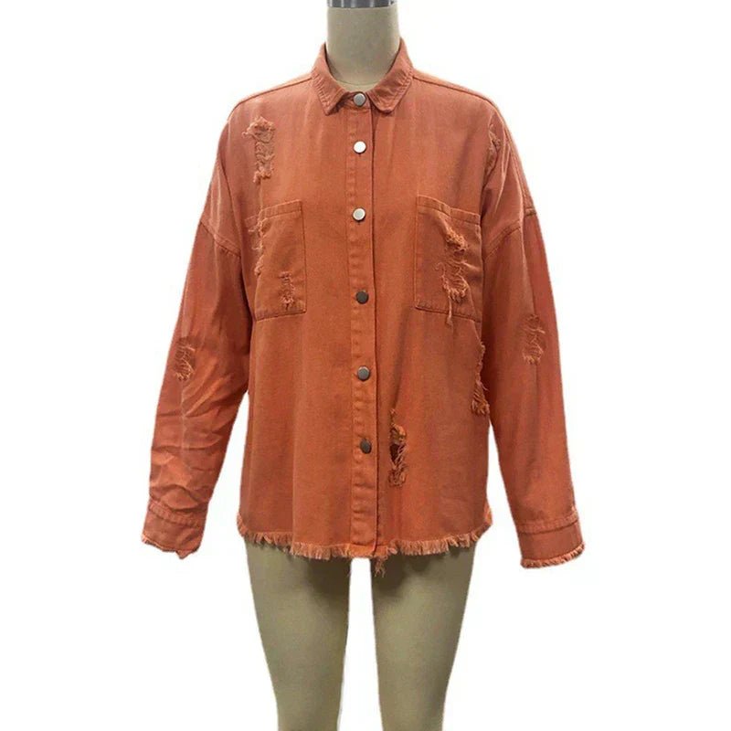 Denna jacka har ett brett snitt och en verklig begagnad look som gör den till ett oumbärligt plagg i varje garderob. Den är mångsidig nog att bäras till olika tillfällen och kan enkelt kombineras med jeans, klänningar eller kjolar för en avslappnad men stilren look.