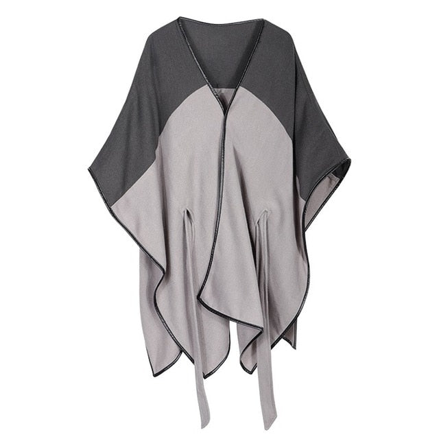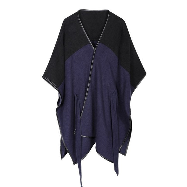 Dam Poncho Halsduk i Mjuk Kashmir med Dekorativt Midjeband