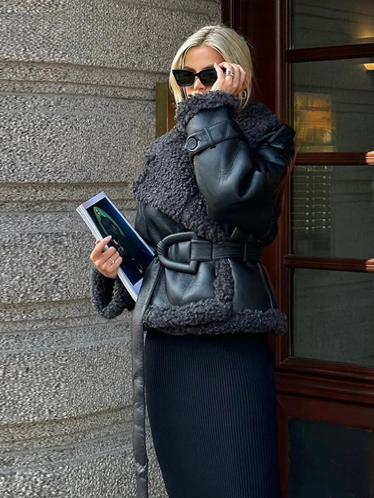 Dam PU-Läderjacka Modern Snitt Högkvalitativt Material
