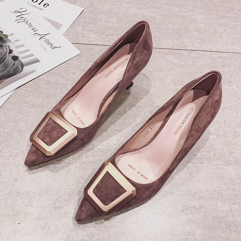 Dam Pumps Klassisk Häl Flock Spetsig Tå Mjuk Material