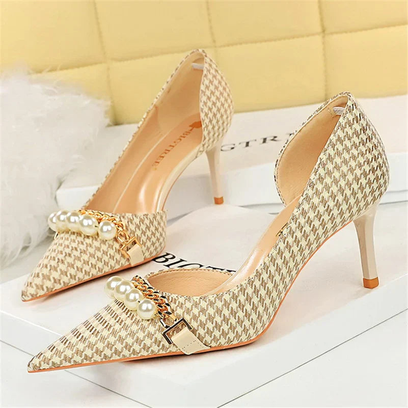Dessa pumps är designade med en spetsig tåform och tillverkade av högkvalitativ bomull, vilket ger en sofistikerad look. Den tidlösa designen gör dem perfekta för både formella och avslappnade tillfällen, vilket gör dem till ett mångsidigt tillskott i din garderob.