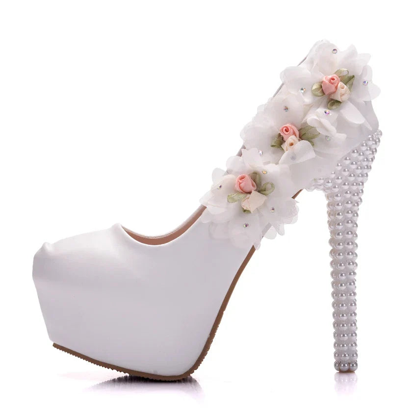 Dam Pumpskor Blommönster Hög Klack PU
