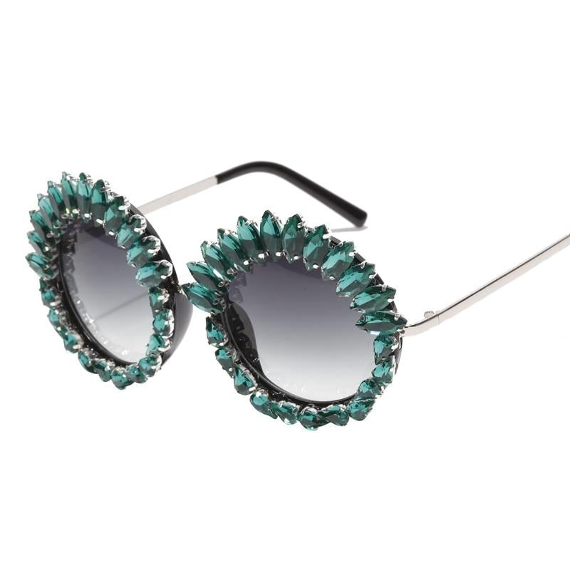 Dam Runda Solglasögon med Strass Detaljer och UV400 Skydd