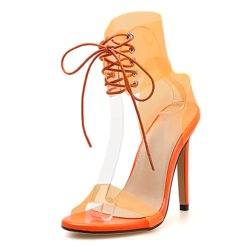 Dam Sandaler Öppen Tå Ankelrem Transparent PVC Hög Klack