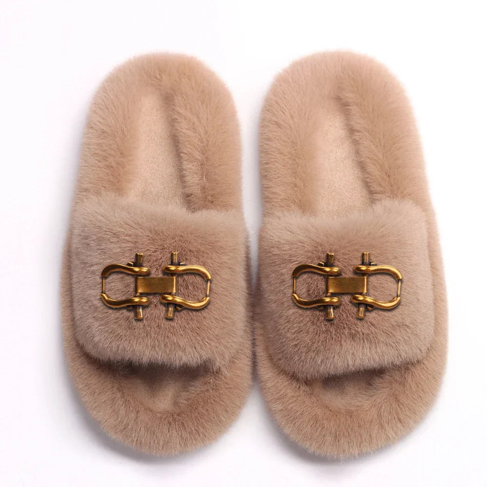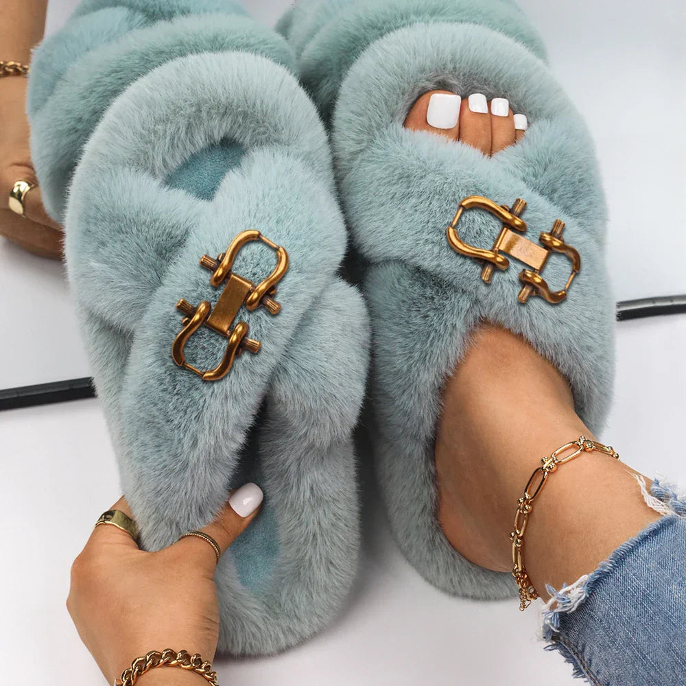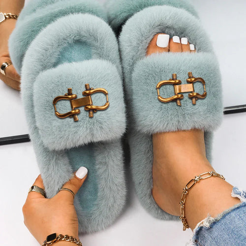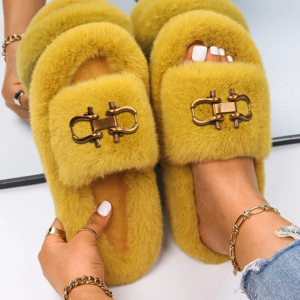 Dam Sandaler Platta Syntetisk Päls med Metalliska Accenter
