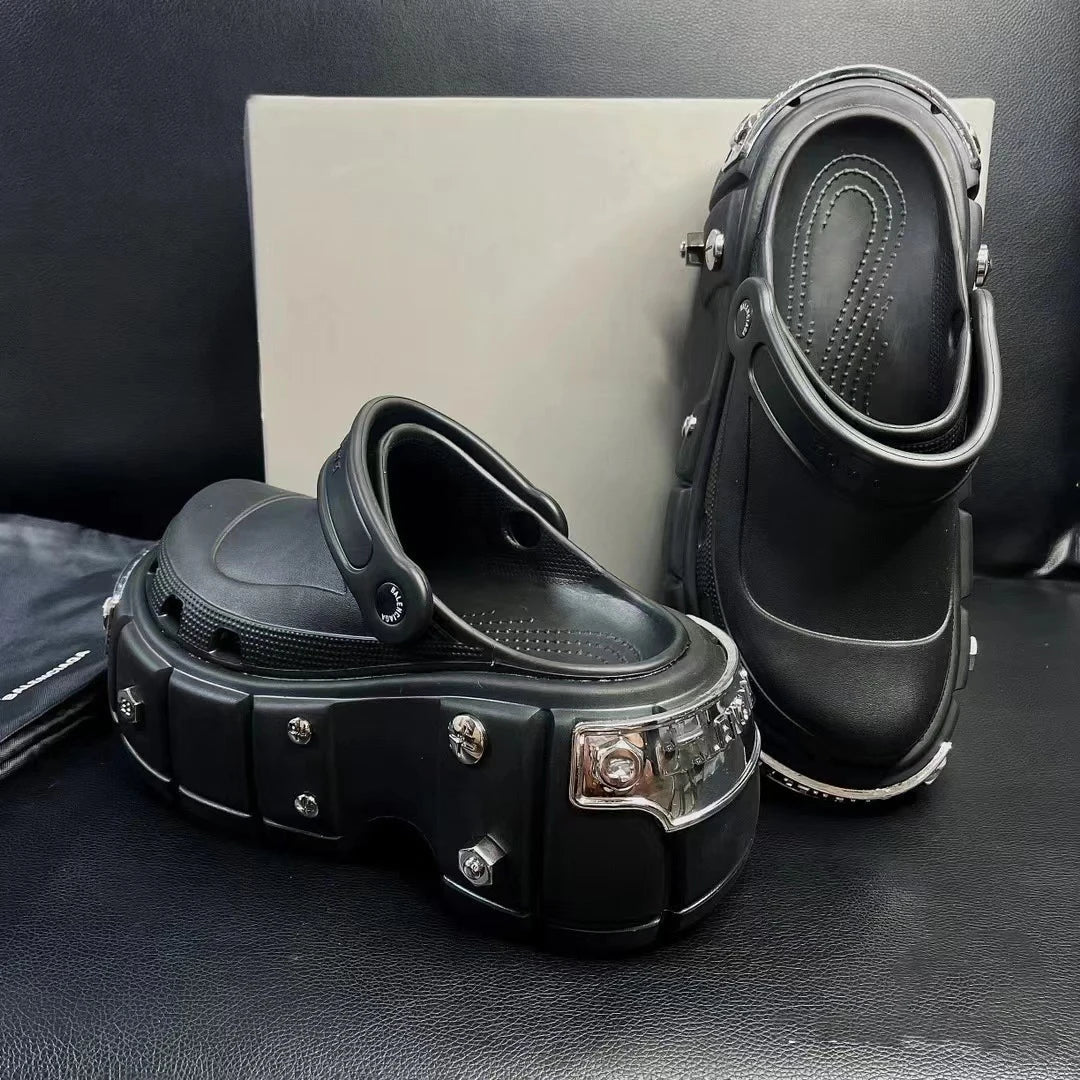 Dessa sandaler är utformade för att ge en avslappnad men ändå djärv stil. Den platta plattformen erbjuder både höjd och komfort, vilket gör dem perfekta för både vardag och fest.
