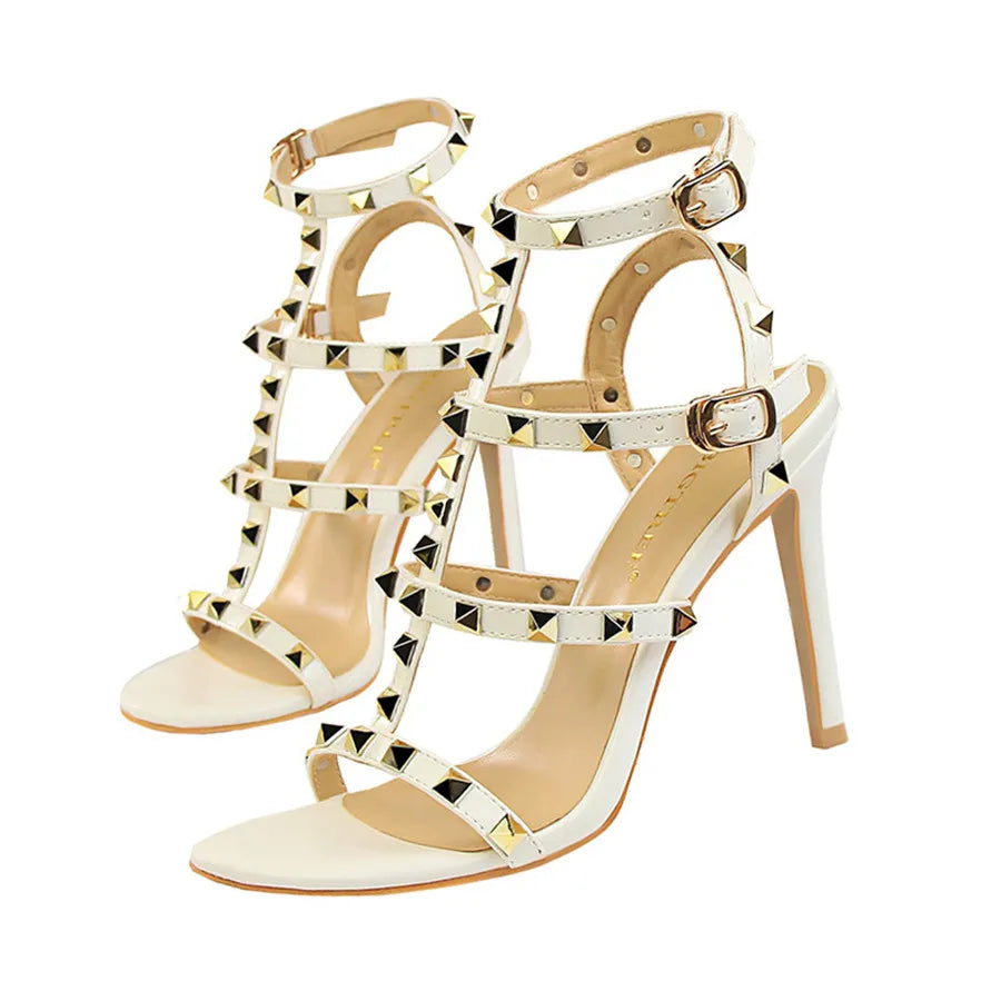 Med sina smala klackar och öppna snitt på sidan erbjuder dessa sandaler en modern och tilltalande look. Tillverkade av högkvalitativt PU-material och stabila gummisulor, är de både hållbara och bekväma, vilket gör dem till ett utmärkt val för både vardag och fest.