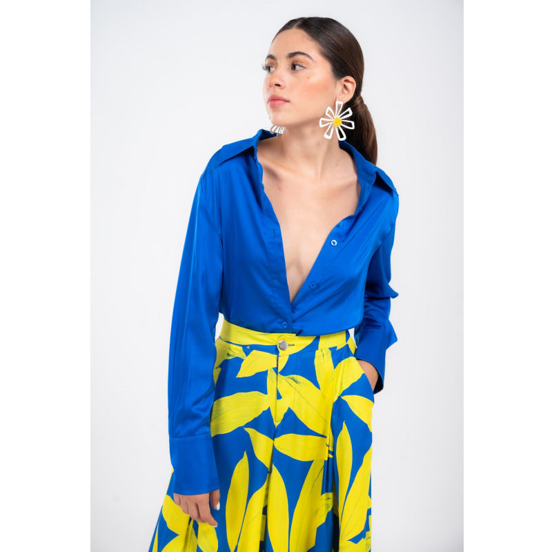 Upplev en perfekt kombination av stil och komfort med detta eleganta set. Den tryckta skjortan och de breda benformbyxorna ger en känsla av självsäkerhet och stil, oavsett tillfälle.