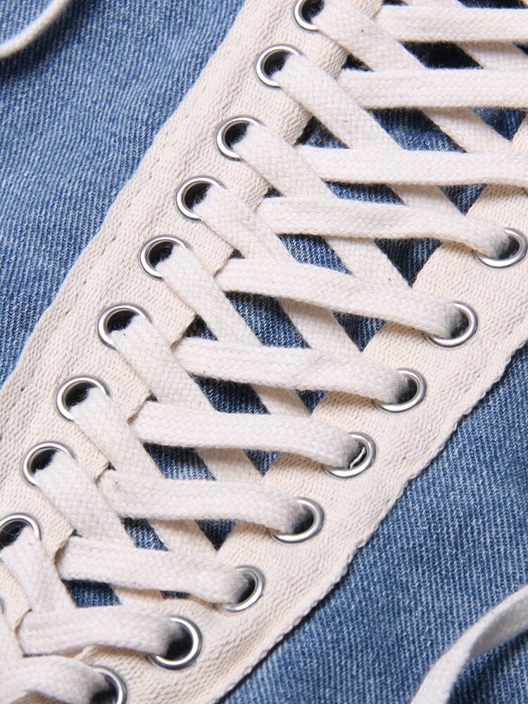 Dam Shorts Hållbar Denim med Sprickor och Snören