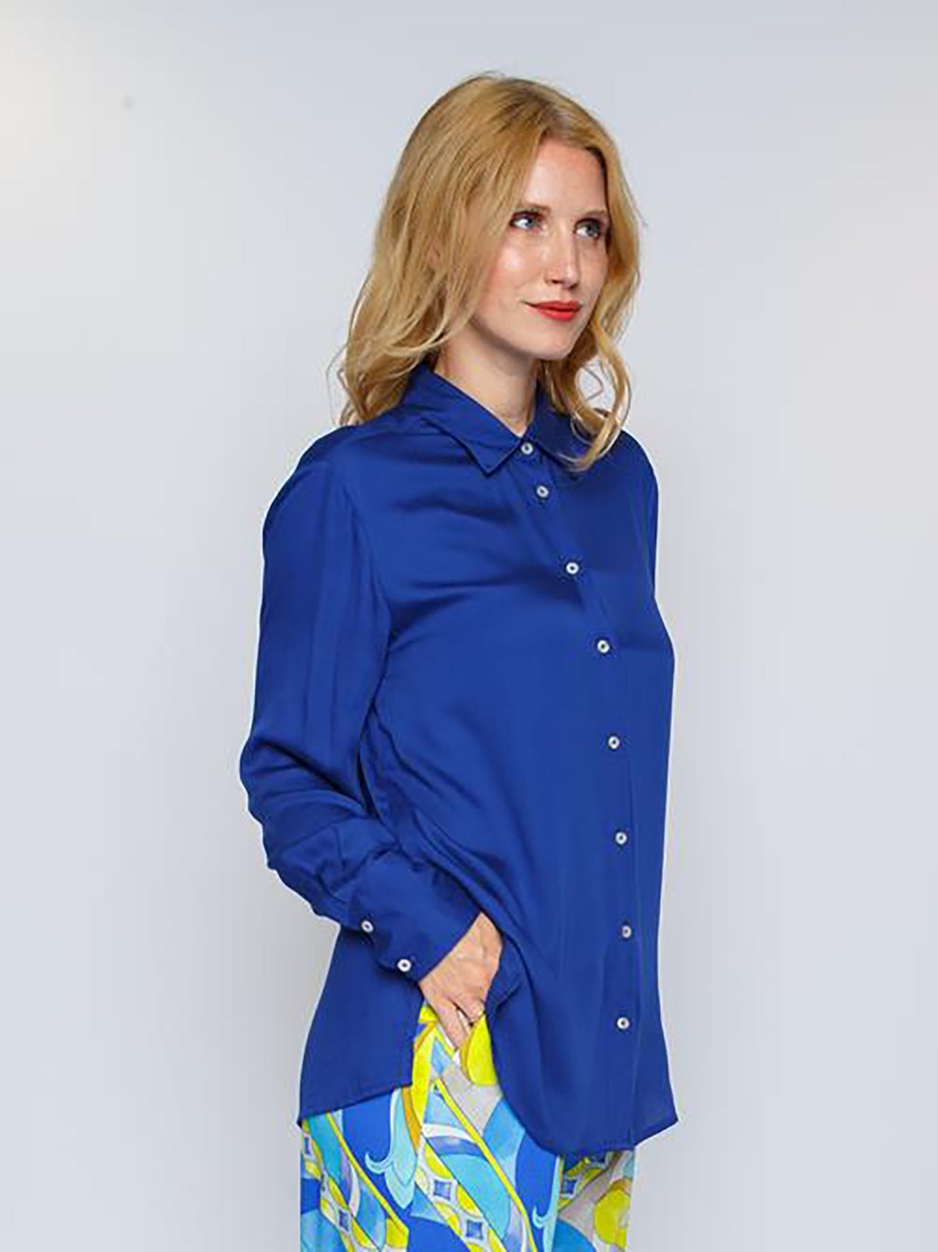 Denna skjorta har en avslappnad passform och är tillverkad av flödande viskos som ger en lätt och luftig känsla. Med en klassisk skjortkrage och en kontinuerlig knappslå, är den designad för att ge en tidlös look.