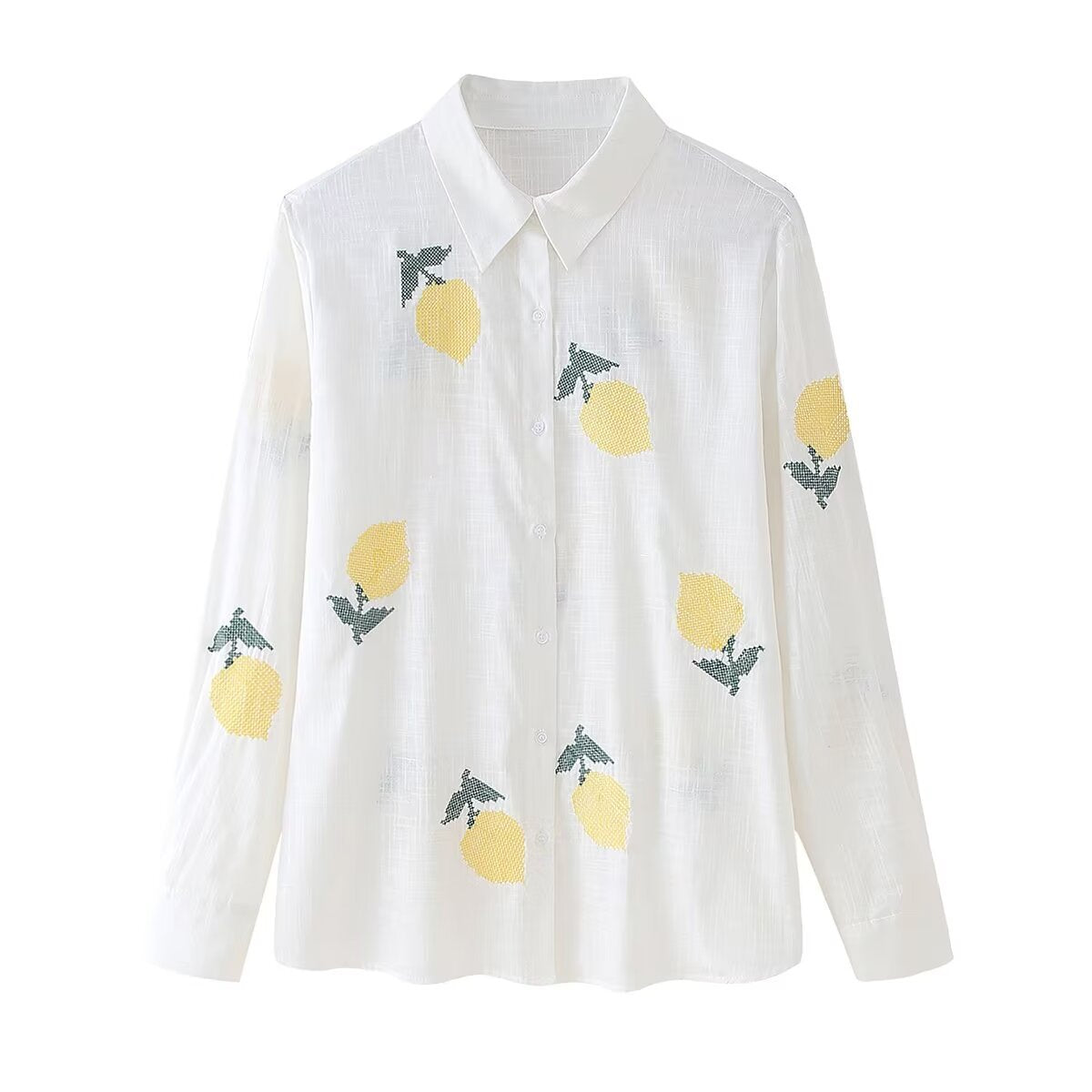 Dam Skjorta Broderad Avslappnad Design 100% Bomull